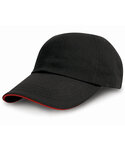 6 panel. Low profile. Unsupported front panels. Suitable for embroidery and print. Pre-curved peak with 4 stitched lines. Stitched eyelets. Contrasting colour sandwich peak. Fabric size adjuster with antique brass buckle.Decoration Guidelines:Decorating methods: Embroidery & Transfer print Decorators access point: Open.